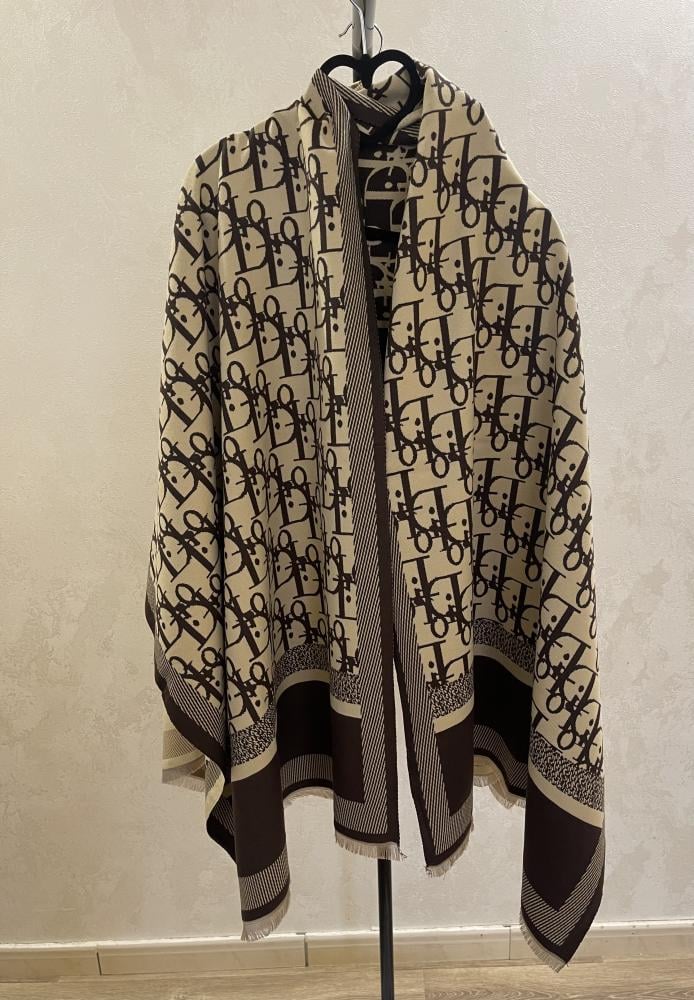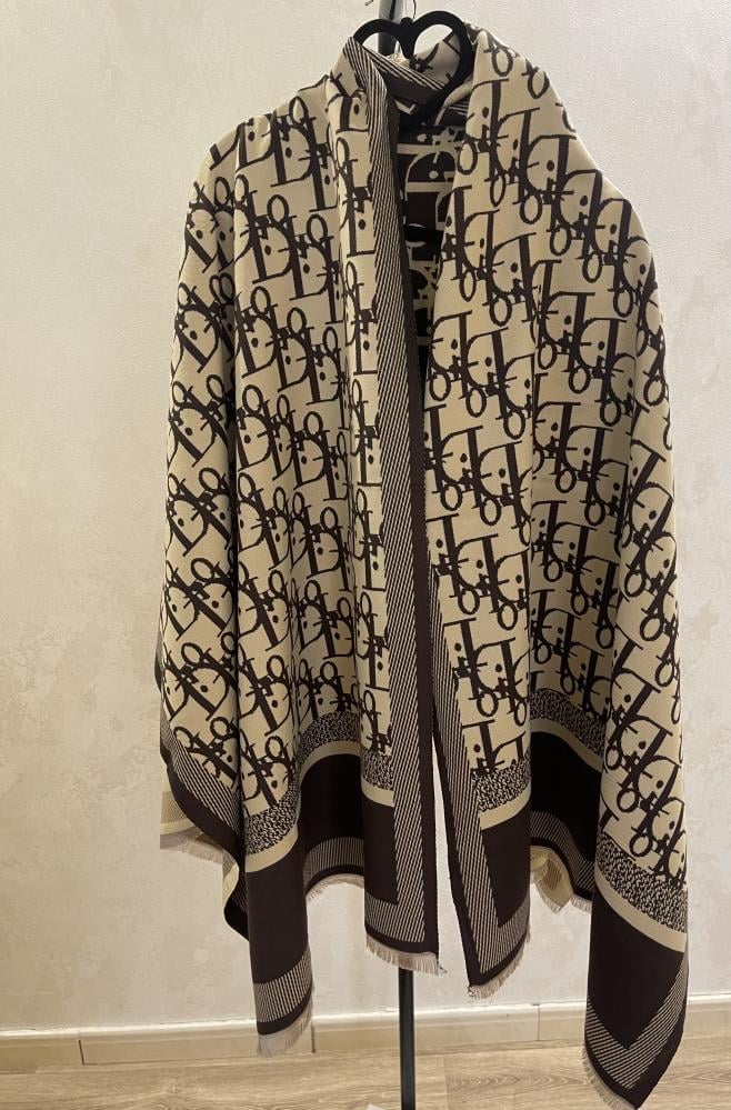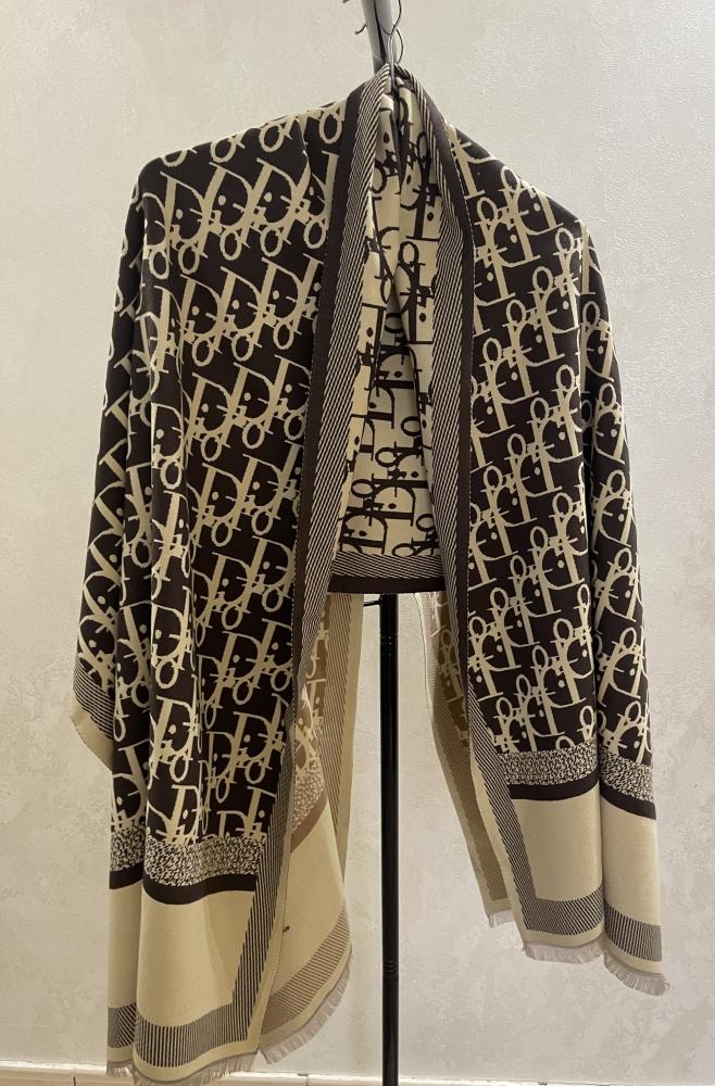 شال ديور كشمير بني غامق واوف وايت يتلبس على الوجهين مع البوكس