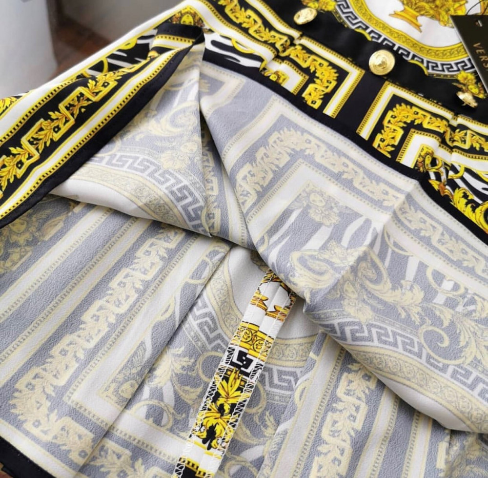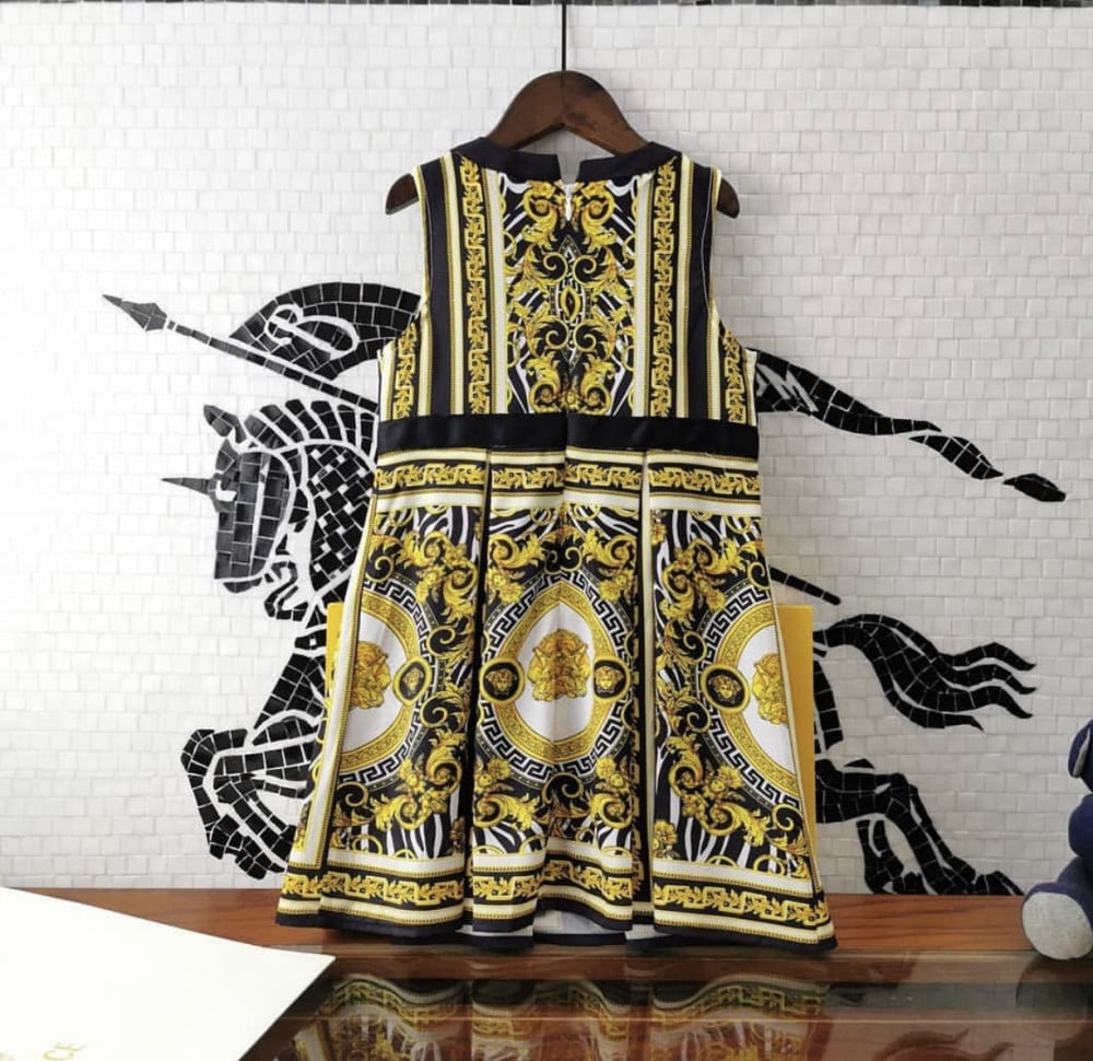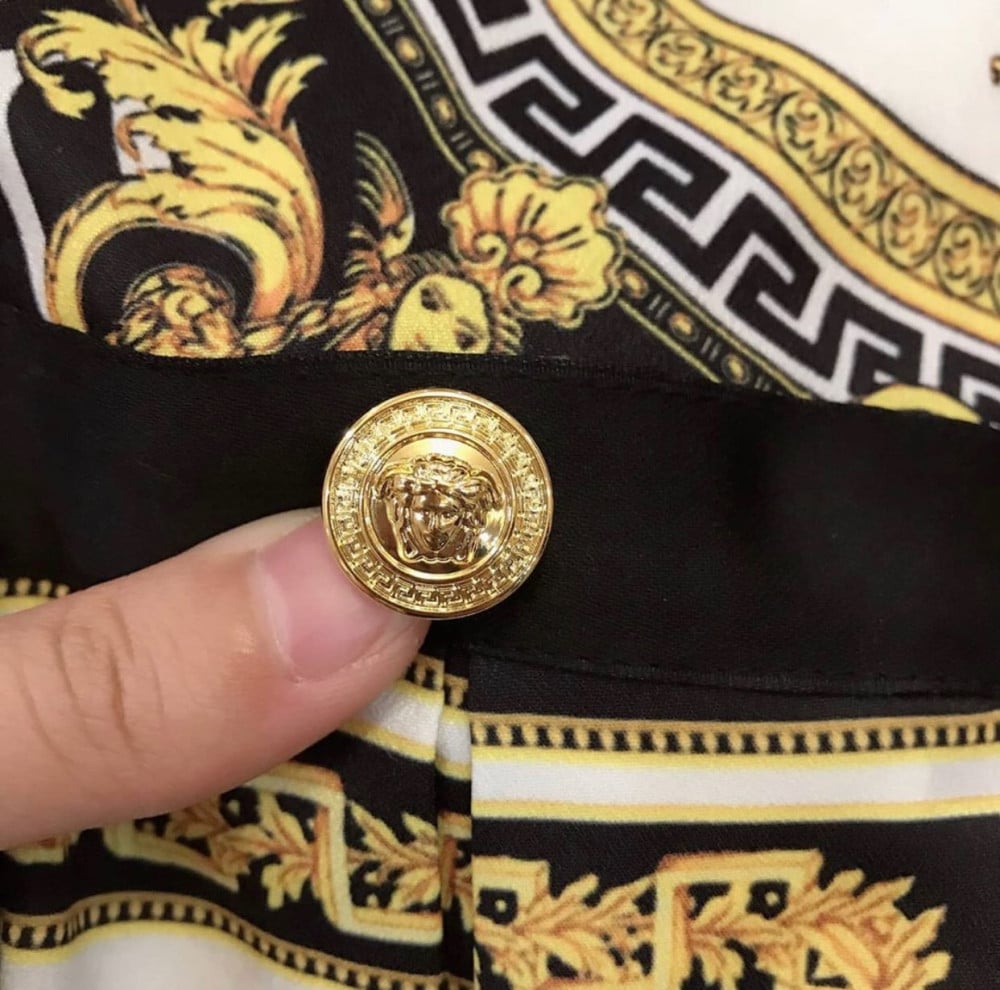 فستان فرزاتشي مزين بأزارير ذهبي علامة فرزاتشي