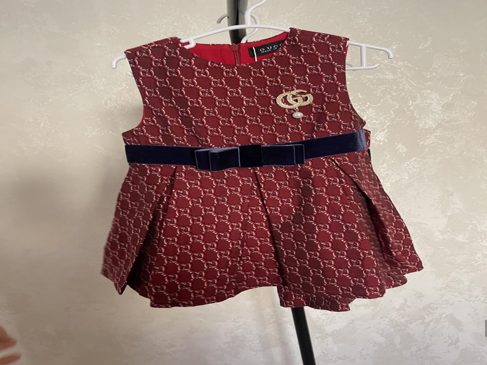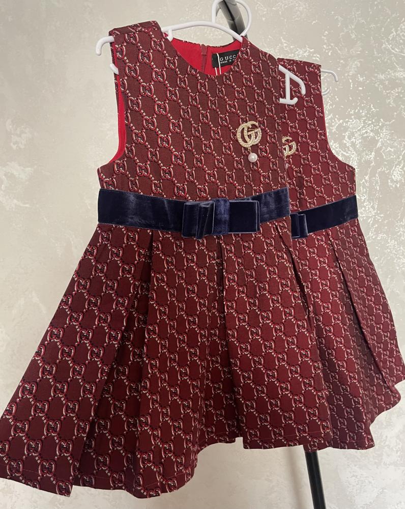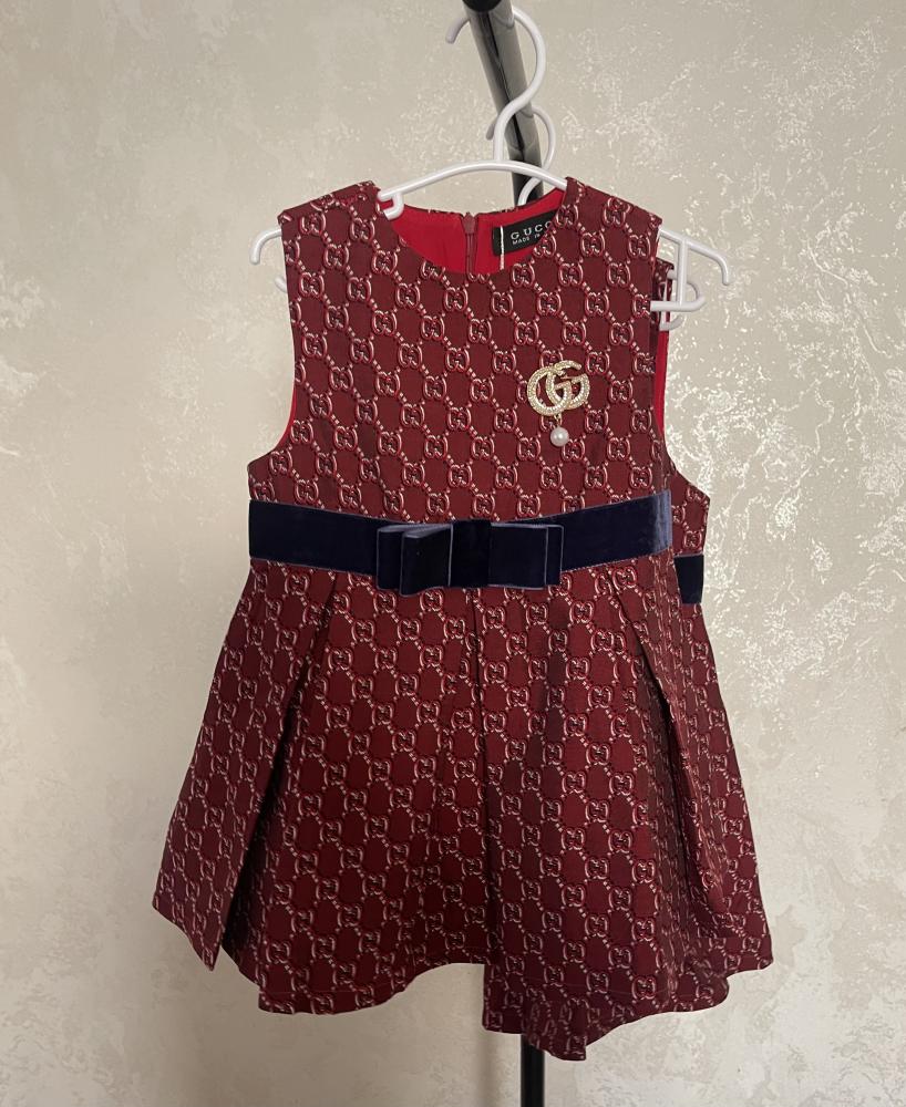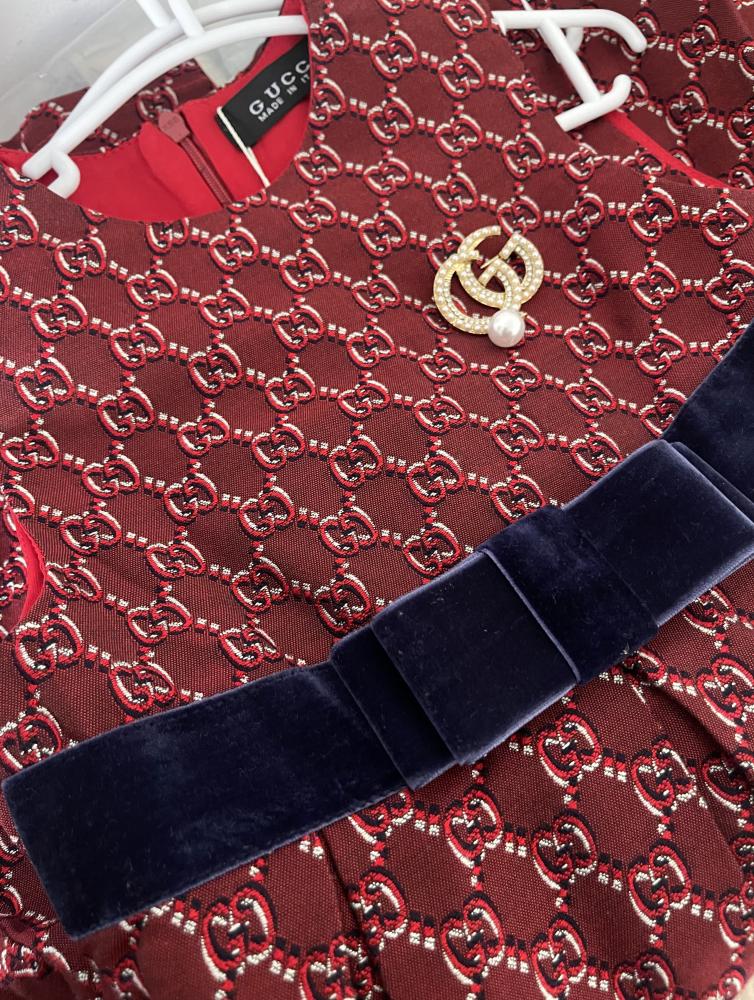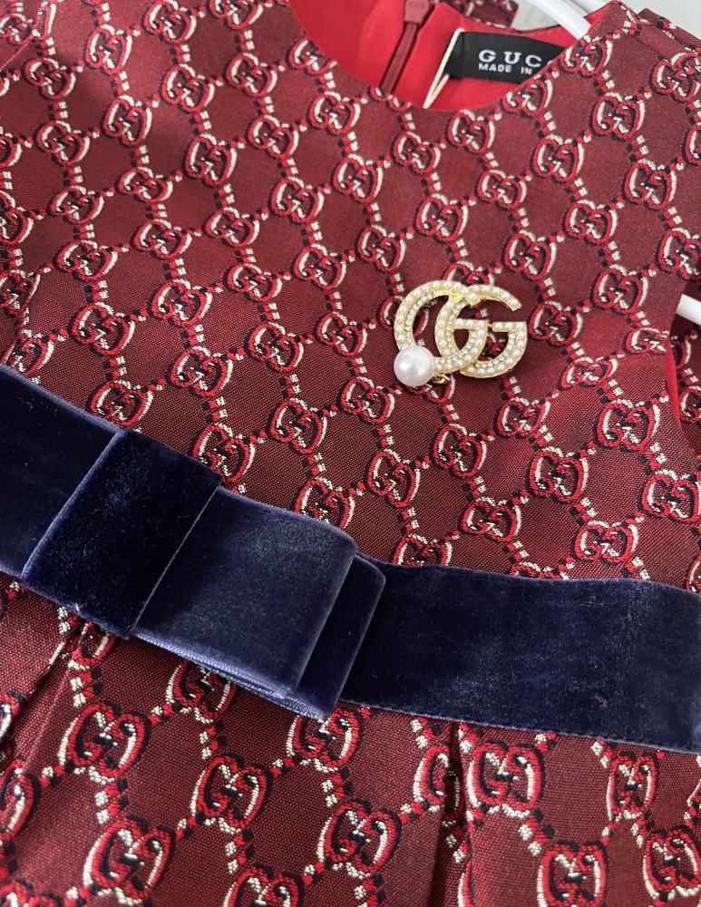 فستان قوتشي جاكار خامة فخمة مزين بكسر وببروش لؤلؤ