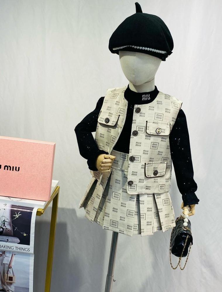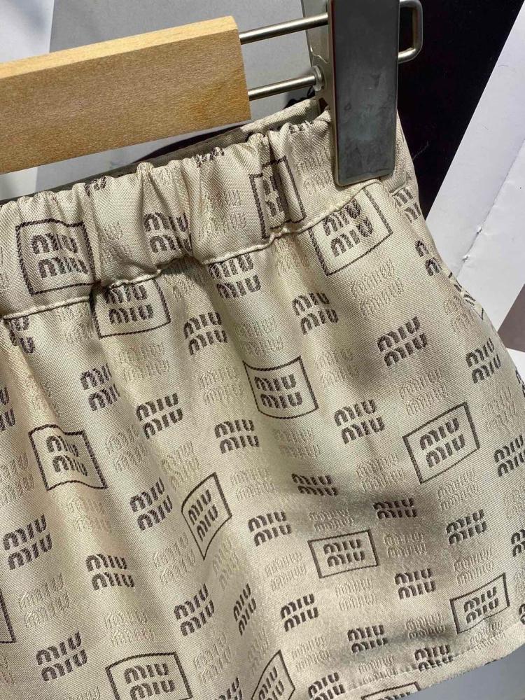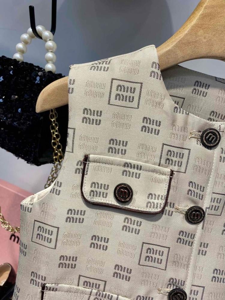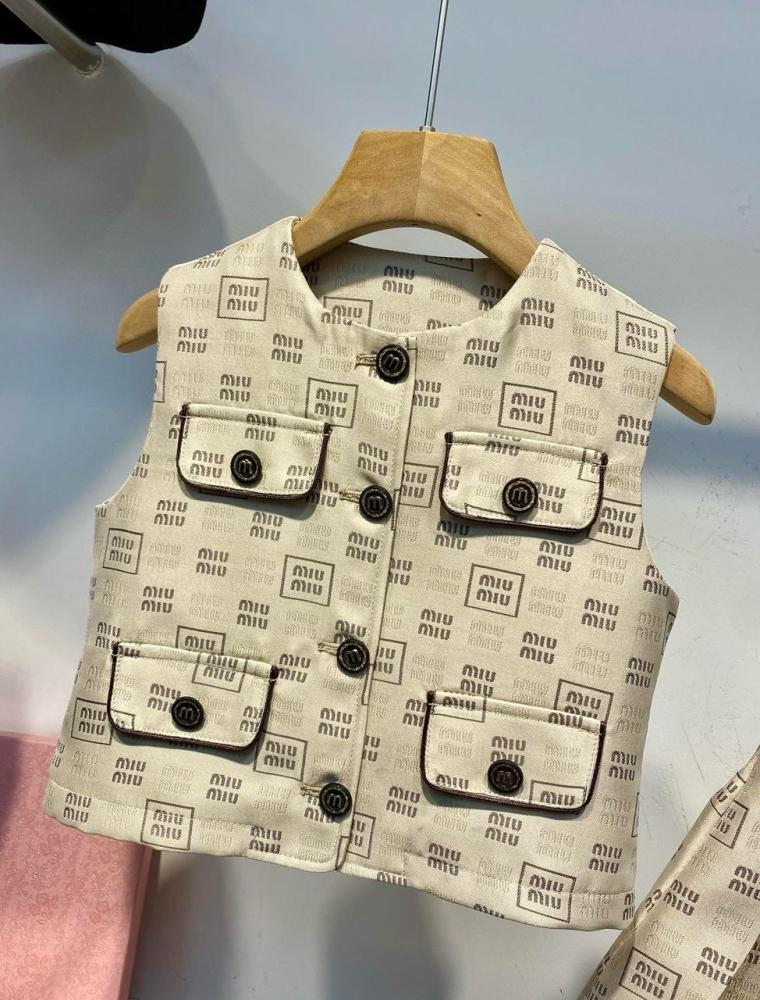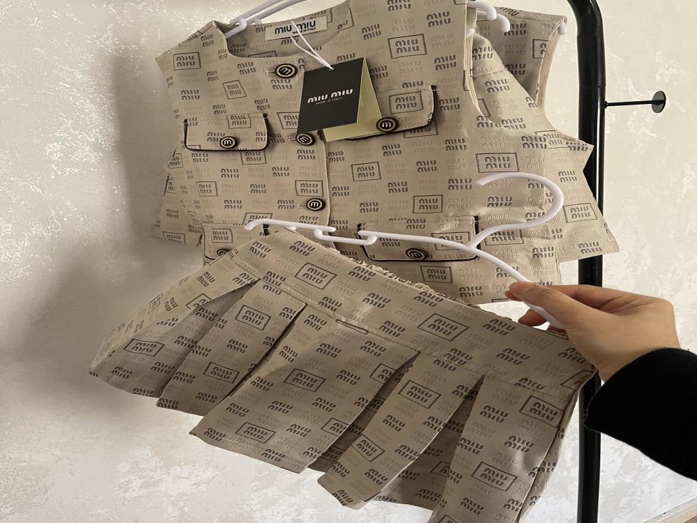 تيور ميو ميو تفتة فخم مكون من قطعتين فيست+تنورة كسر مزين بازارير بعلامة الماركة